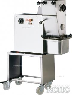 | | Ломтерезка Koneteollisuus Oy (KT) F-S19-9 ( под заказ 60 дней) Цена- по запросу | используется на предприятиях пищевой промышленности и торговли для нарезки бескостного мяса на тонкие слои и ломтики, а так же для нарезки печени, филе домашней птицы, филе некоторых видов рыбы, плотных по консистенции овощей и фруктов. Модель оснащена емкостью для сбора обработанного продукта, температурным предохранителем, реле автоматического отключения двигателя и реверсивным переключателем. Корпус выполнен из нержавеющей стали. 380В, 1,5кВт, максимальная загрузка 1,5 кг, длина ножей 9 мм, производительность: 500 кг/час - ломтики, 1500 кг/час- слои, габариты: 500*770*710 мм, подставка 400*700*515 мм | |