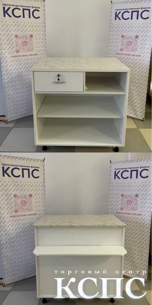 | ФР-00007148 | Прилавок рабочий Стандарт с полкой для сумок, кассовый ящик, ножки | 900х500х900мм | 10950 руб.